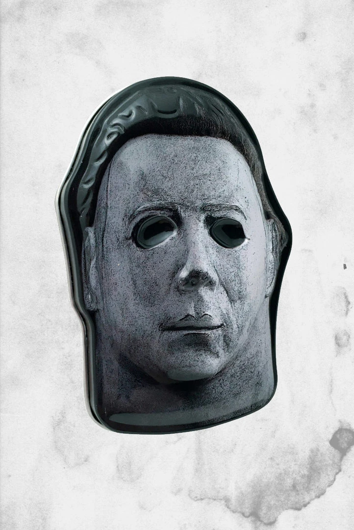 The arresting white mask worn by Michael Myers in the Halloween series is filled with 1.0 ounce of knife-shaped orange sours. The perfect gift for that person that loves the Halloween series and has everything.