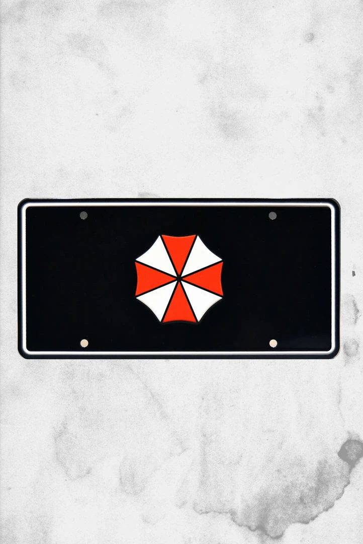 The black UMBRELLA CORPORATION License Plate is produced as seen on the front of the Umbrella Corps Chevrolet Suburban in the 2004 film Resident Evil: Apocalypse.