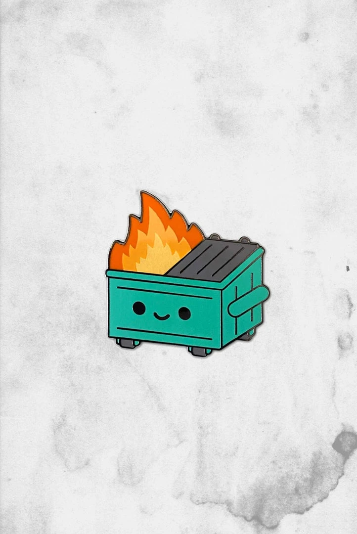 Is everything around you a waking nightmare? Celebrate with some kawaii trash, just like your life! The Lil Dumpster Fire enamel pin will surely brighten up your garbage day.
