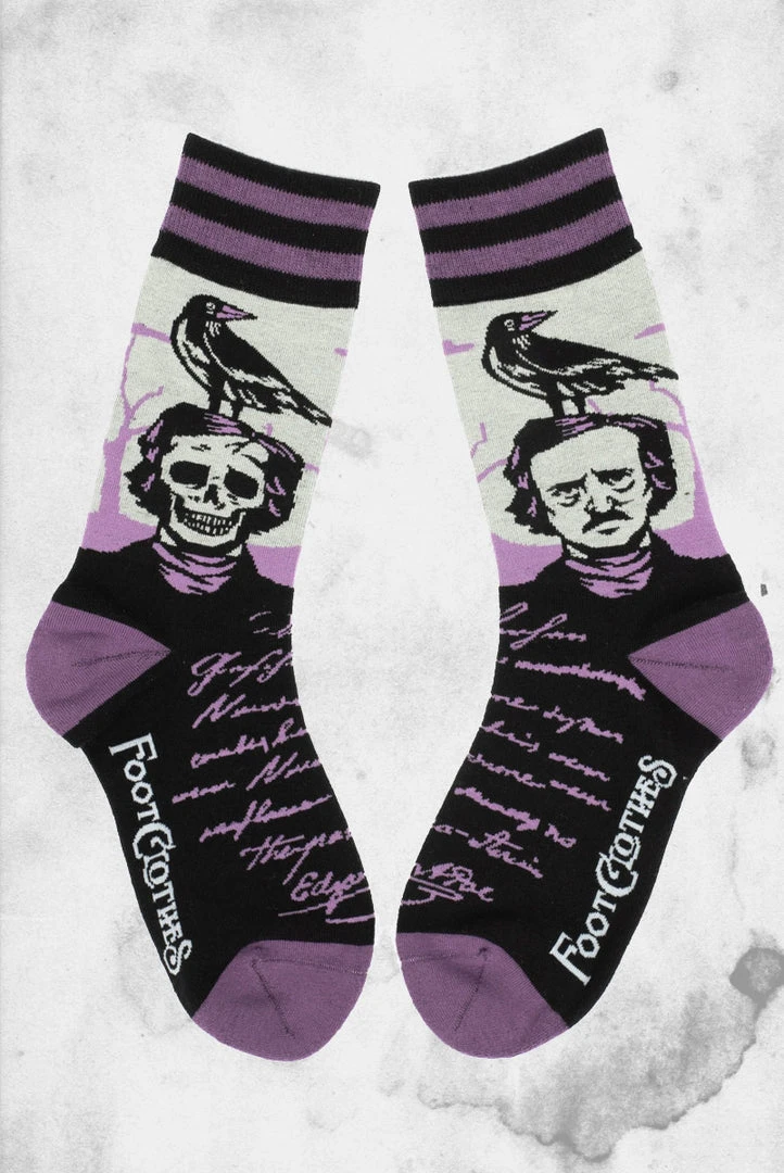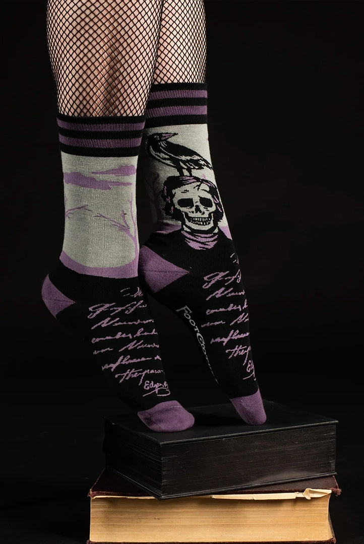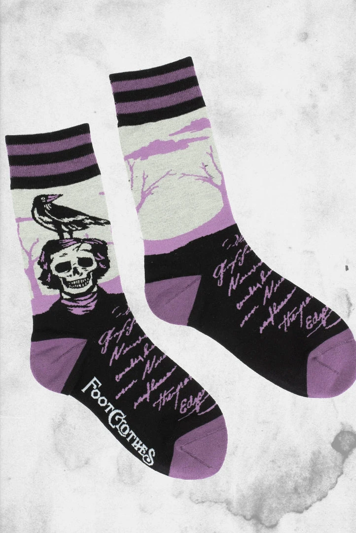 For our fans of the macabre and dark, these socks are great for wearing while tapping at chamber doors. Behold, our tribute to the great Edgar Allan Poe. Next time you ask a raven if you should wear socks that aren’t these ones, he will quoth, “nevermore.”