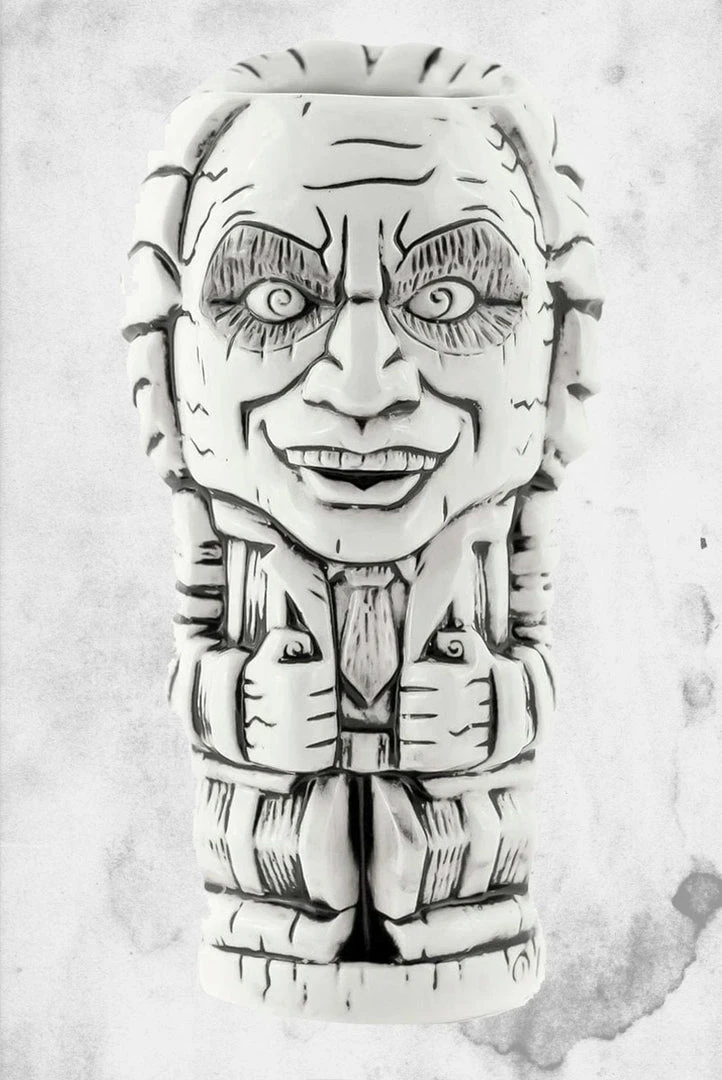Unless you’re looking for a great time of course! Beetlejuice is the poltergeist undead ghostly figure who the Maitland couple reluctantly summon to get rid of the new unwanted mortal homeowners, the Deetz’s. As a self-proclaimed “bio-exorcist” Beetlejuice uses extreme measures to haunt the Deetzes even transforming into a terrifying snake! He’s a miscreant, he’s morbid, he’s crude, and most importantly, he’s now a tiki mug you can drink from! Enjoy hours of throwing back round after round of your favorite drink with the one and only Beetlejuice! (That’s right we said it three times!)