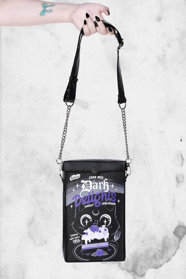 Give em’ something to talk about with the ‘Dark Delights’ backpack; a rectangle packet backpack with plenty of room for yer essentials. Statement print on all sides, zip closures, inside pockets, and adjustable straps. Comes with a handy chain strap so can be worn as a backpack or messenger bag – whatever yer mood. The perfect mix of angst and playfulness – easy to style and a sure head-turner.