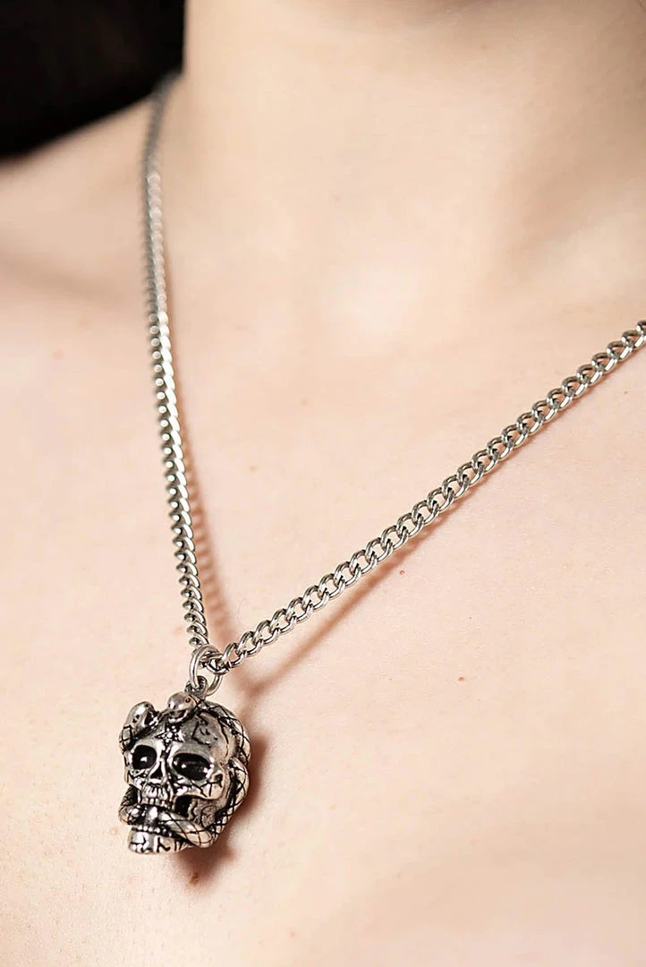 Add some life force to your outfits with our ‘Spiritual Entities’ necklace, featuring a large snake and skull pendant it’s the perfect piece to add the finishing touches to any dark ensemble.