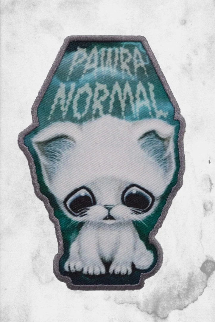 Pawra Normal activity has never been this cute, Sugarfueled collab Ghost Cat Patch with an embroidered grey border and sublimation ghost cat print perfect for your jacket and backpack.