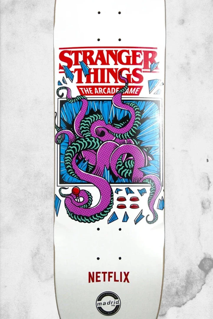 Looking for that perfect item to hang on your wall or give to the ultimate Stranger Things fan that has everything? Well stop looking and get this officially licensed Stranger Things x Madrid skateboard deck! This movie poster deck features Eleven and the gang outside of the Starcourt mall ready to take on the creatures from the Upside down.