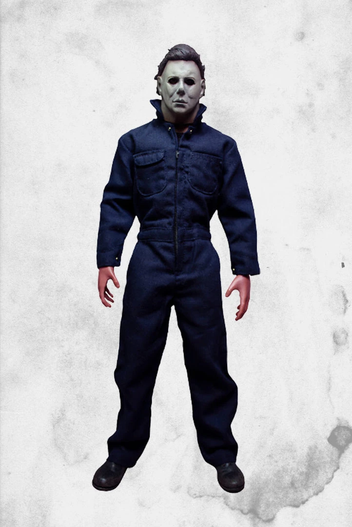 This Michael Myers figure from Trick-or-Treat studios stands at 12-inches-tall and is dressed in overalls that actually zip up. We all know this look from the movies. It has thirty points of articulation so that you can pose this figure just so and maybe even reenact some of your favorite moments from the 1978 classic! The hands are interchangeable, one can hold a butcher knife while the other is open for fully-throttling action.