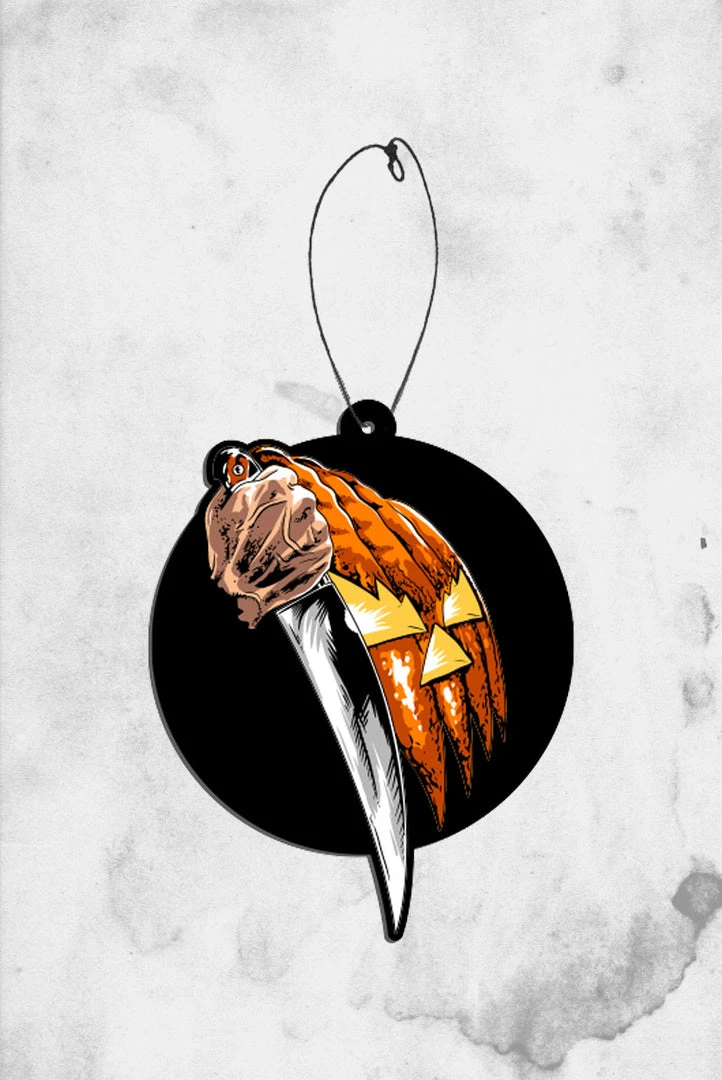 This beautiful full color 3.5″ tall air freshener of Michael Meyers from the original 1978 Halloween Movie, comes with an elastic band to make it easy to attach to any place you want to smell clean and fresh.