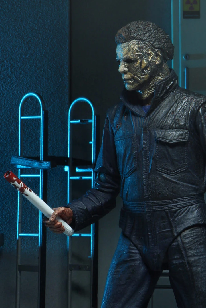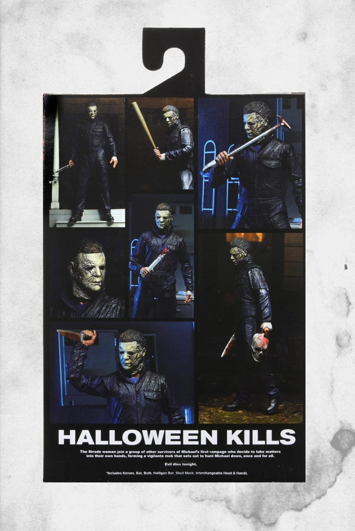 This screen-accurate Michael Myers action figure stands in 7″ scale and comes with knives, bat, bulb, skull mask, Halligan bar and interchangeable head and hands… and he’ll need it all when the Strode women set out to end his evil reign of terror.
