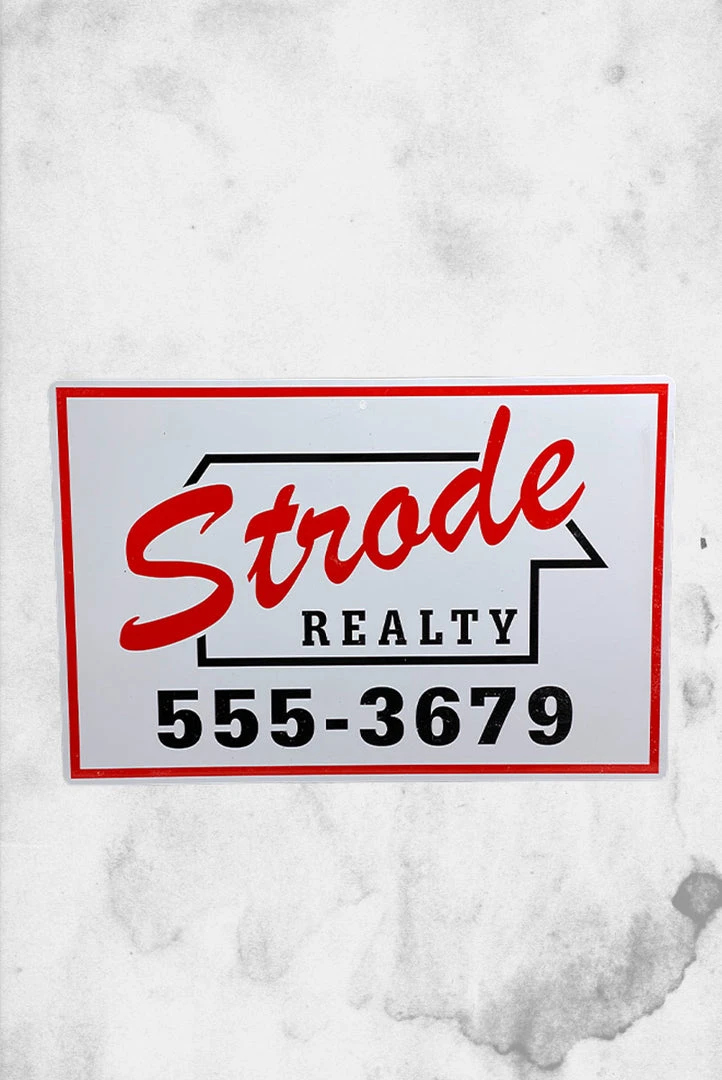This sign was made to be a exact version of the Strode Realty sign as seen in John Carpenter’s Classic Halloween. This beautiful sign is made from solid metal with a bright solid landscape printed design.