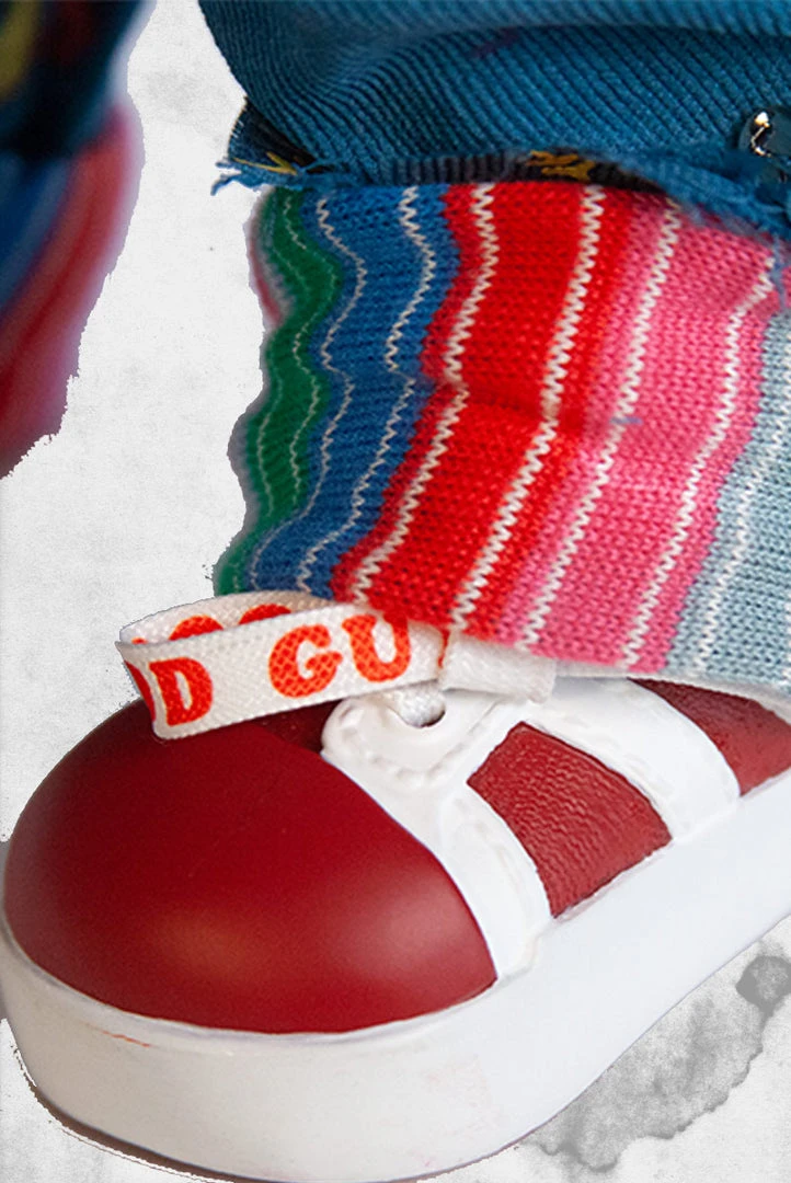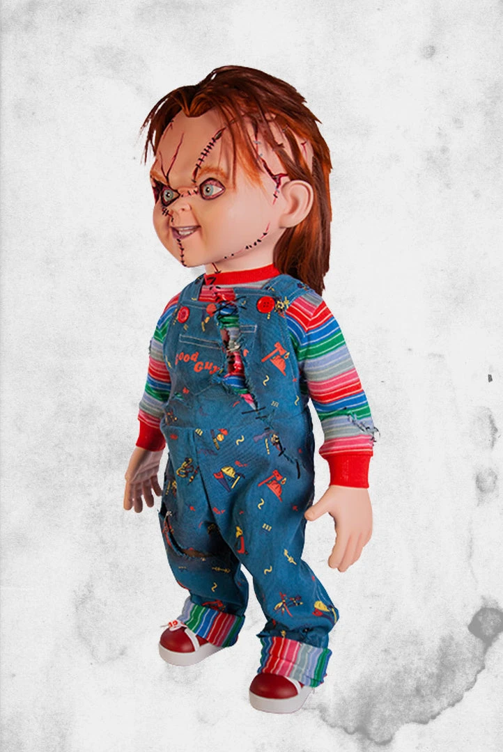 The Officially Licensed 1:1 Scale Seed of Chucky – Chucky Doll is the most screen accurate Scarred Chucky Doll ever produced. This Doll was developed by Tony Gardner and Alterian Inc. the company responsible for making the actual screen-used doll. Every detail of this Doll is made using the actual screen-used molds, including the clothing which was replicated using screen-used swatches.